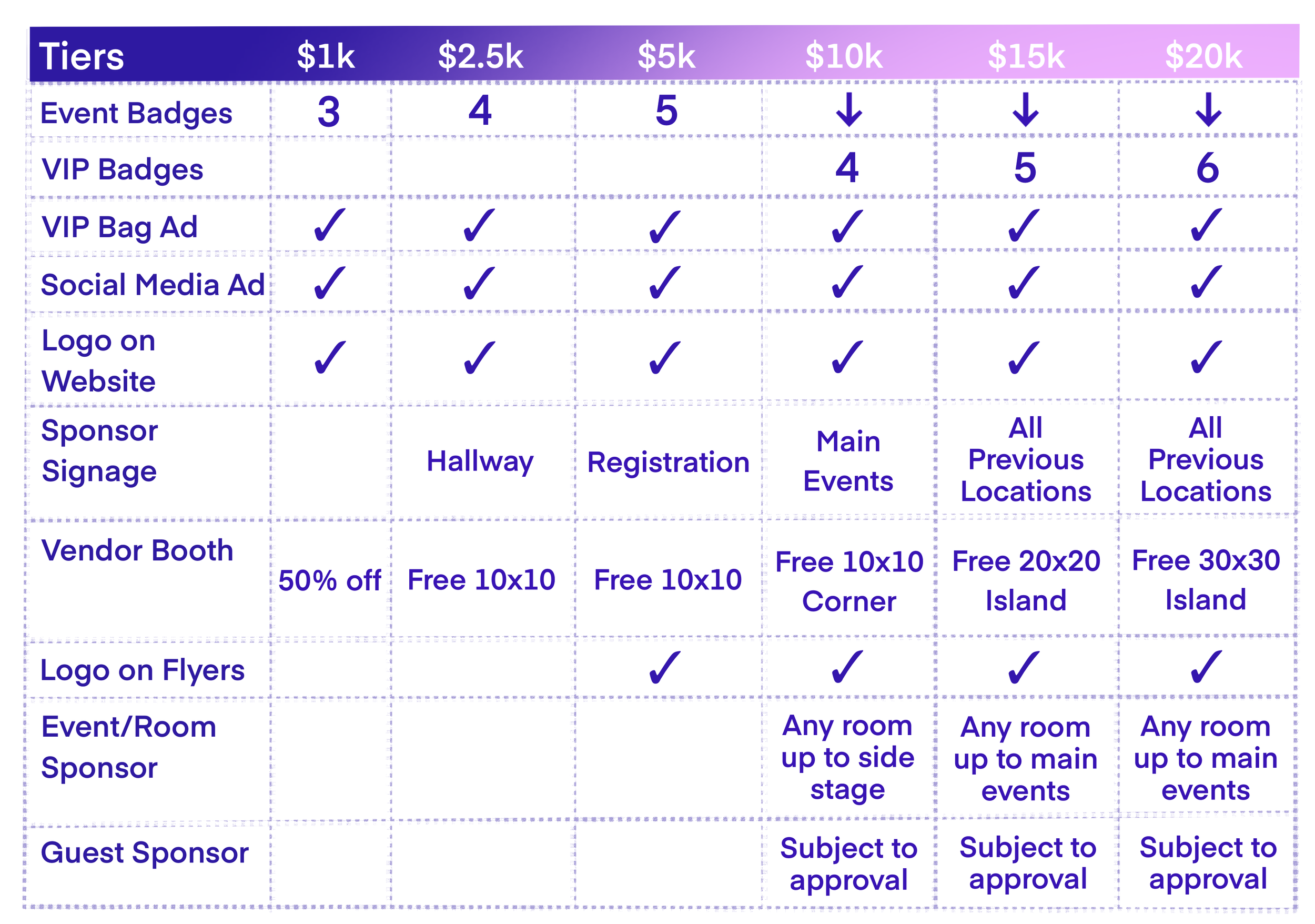 Purchasing a sponsorship package grants you all of the items listed under the tier that you have selected!